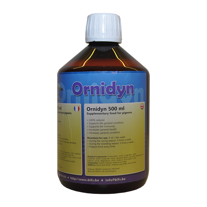 Pomaga gołębiom w obronie przeciwko mikroorganizmom. Ornidyn pobudza układ obronny tak, że gołębie